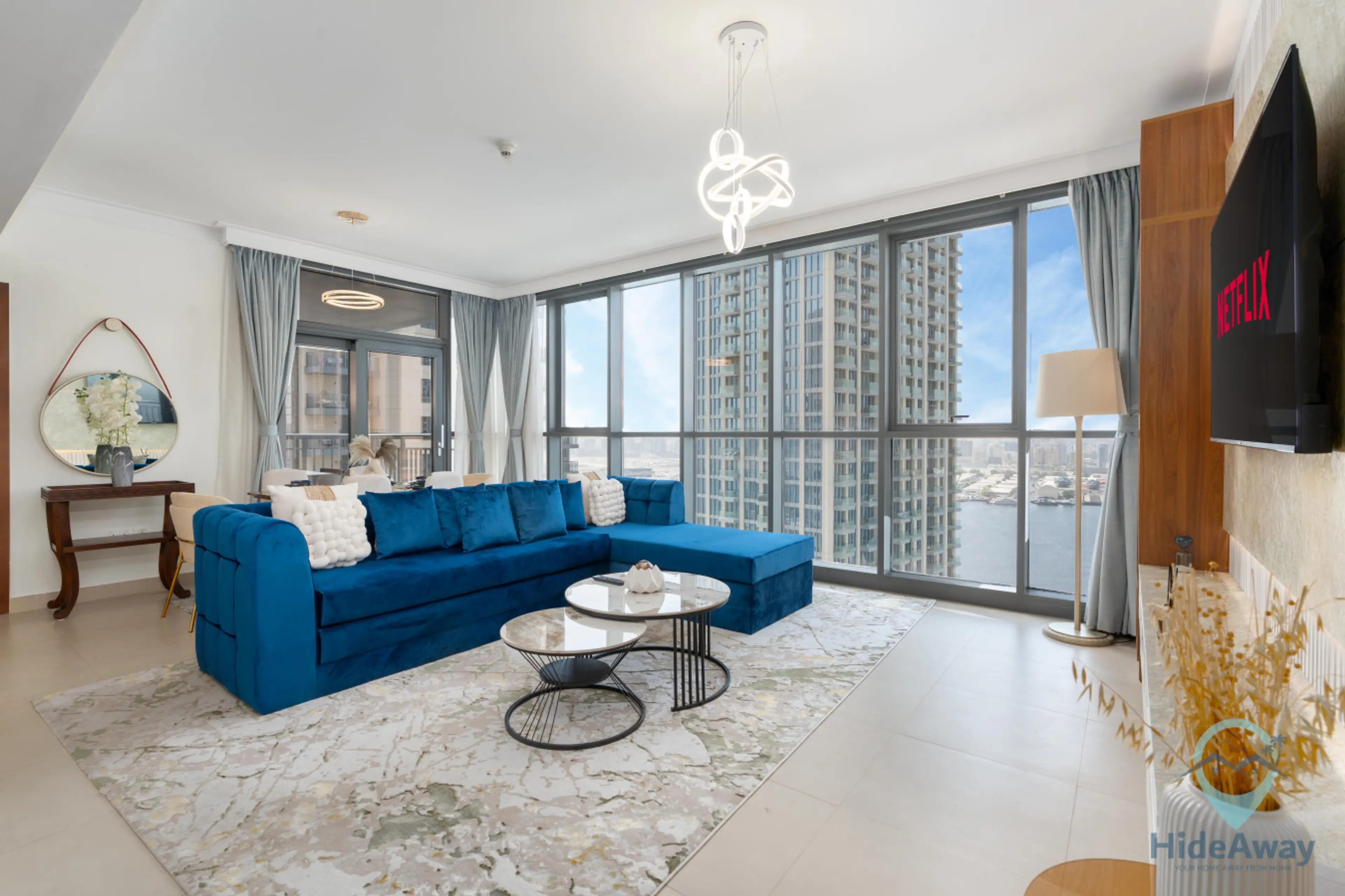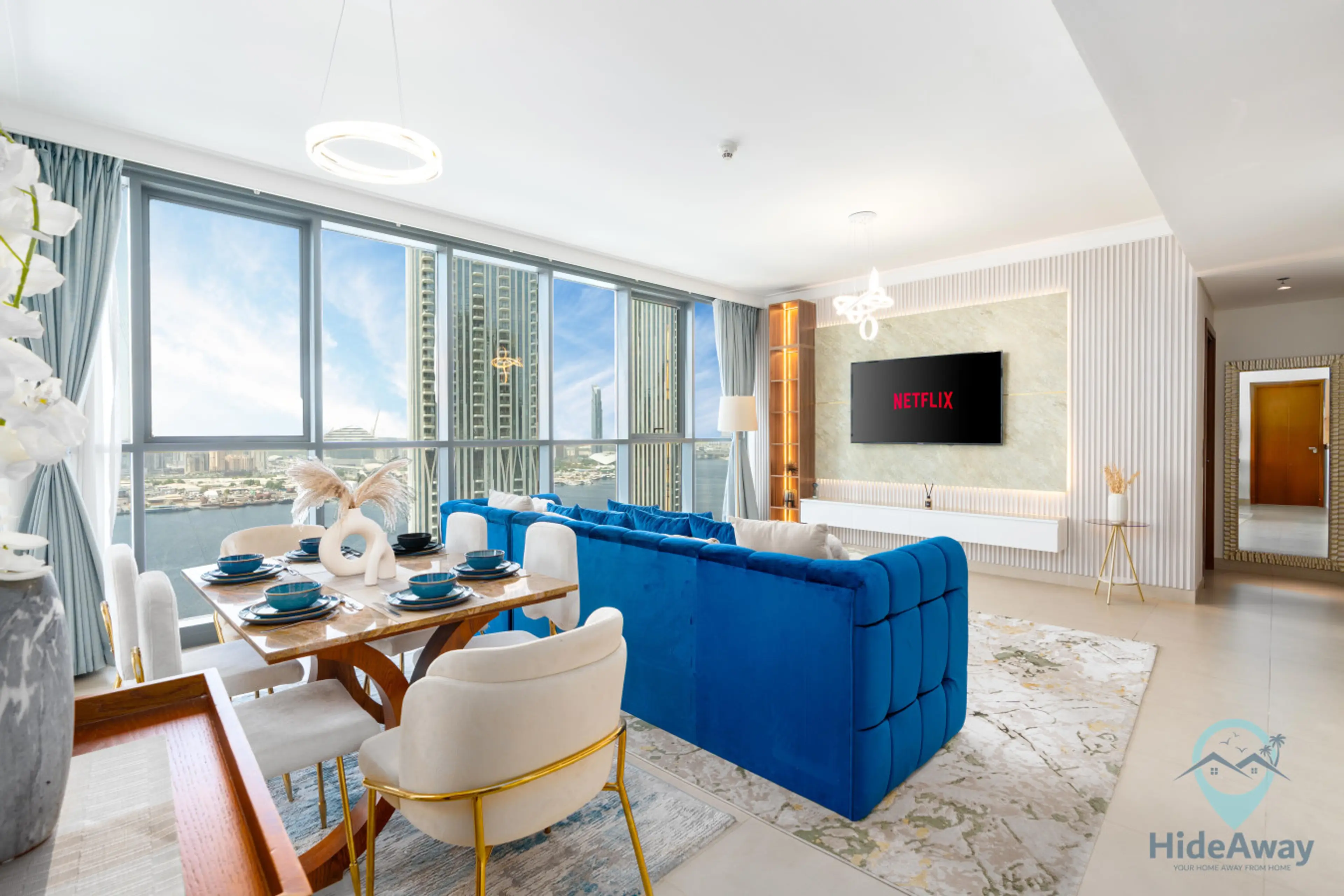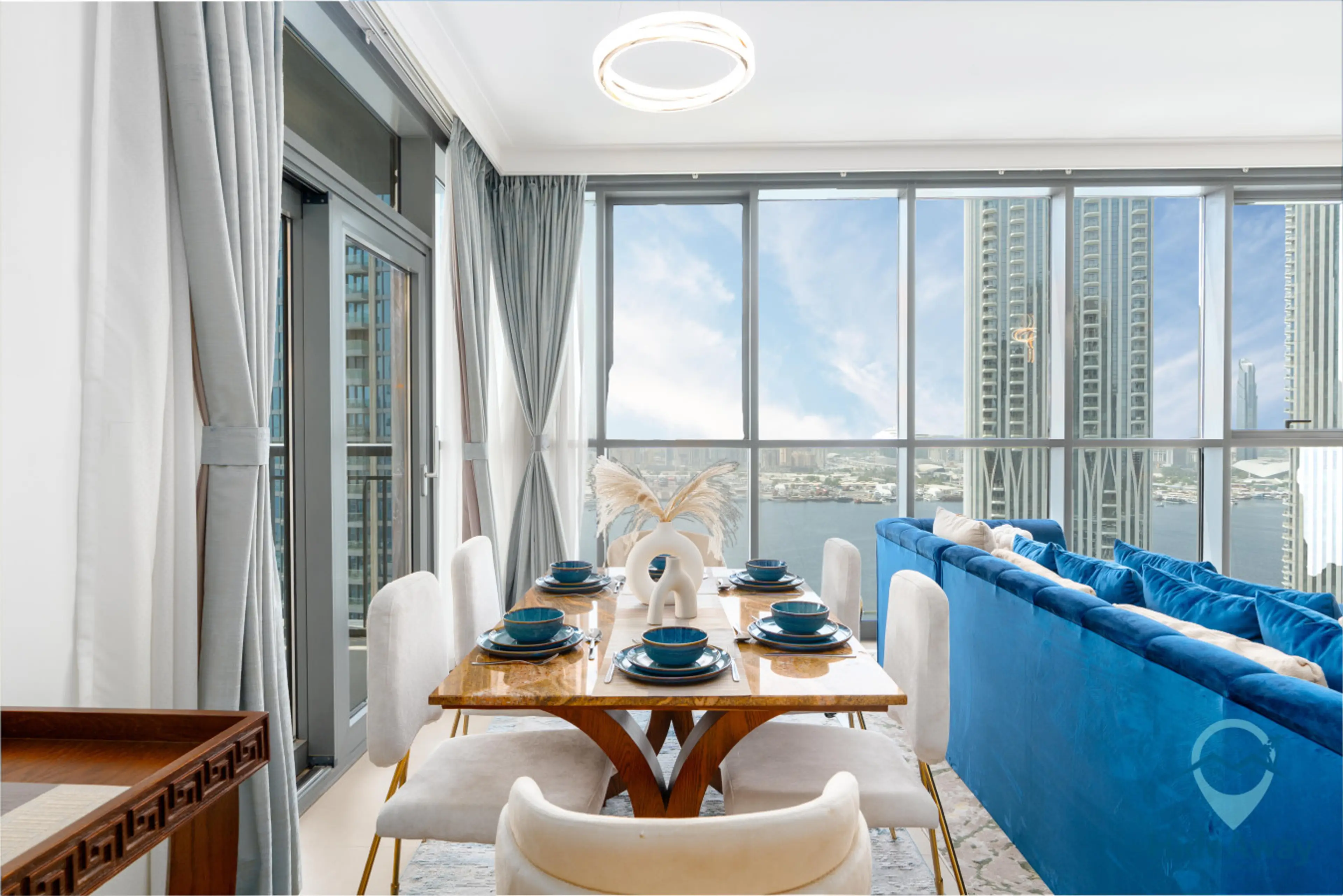 Experience Dubai in style at this luxurious 2BR Creek Harbour apartment with full waterfront views and a pool overlooking the Burj Khalifa. Sleeps up to 7 with flexible bedding, featuring a queen bed, sofa beds, and spacious living areas. Enjoy a 65β Smart TV, elegant interiors, balcony sunsets, and...