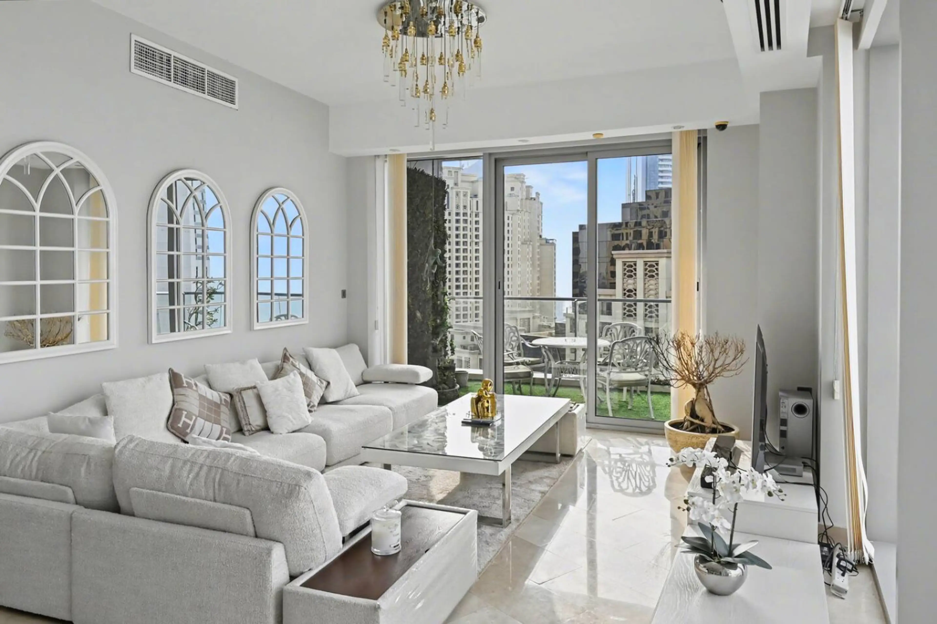 Luxury 3-bedroom apartment in Trident Grand, JBR, offering panoramic sea, Marina and JBR views. Spanning 2,300 sq ft with two balconies, two en-suite bedrooms with private balconies, plus a guest bathroom. Open-plan kitchen with Nespresso machine, air fryer and essentials. Elegant furnishings, pool ...